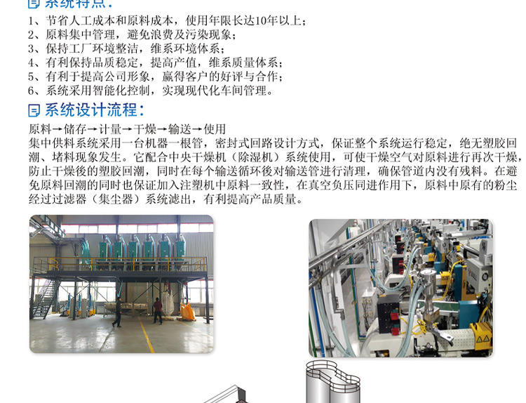 集中供料系統(tǒng)特點(diǎn): 1、節(jié)省人工成本和原料成本,使用年限長(zhǎng)達(dá)10年以上; 2、原料集中管理,避免浪費(fèi)及污染現(xiàn)象; 3、保持工廠環(huán)境整潔,維系環(huán)境體系; 4、有利保持品質(zhì)穩(wěn)定,提高產(chǎn)值,維系質(zhì)量體系; 5、有利於提高公司形象,贏得客戶好評(píng)與合作。